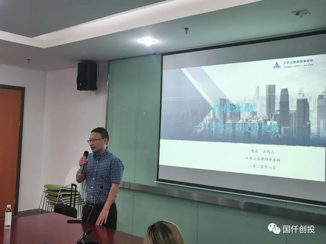 8月6日,國(guó)仟?jiǎng)?chuàng)業(yè)投資管理(蘇州)有限公司聯(lián)合江蘇省醫(yī)療器械科技產(chǎn)業(yè)園邀請(qǐng)江蘇立泰律師事務(wù)所合伙人陳磊律師,共同開展了關(guān)于《股權(quán)激勵(lì)—以合伙人制度為視角》的法律培訓(xùn)。