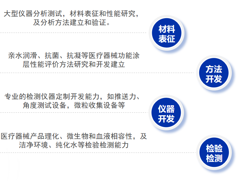 深究涂層百因,百因特面向客戶(hù)提供科學(xué)全面的涂層“診斷”服務(wù)。針對(duì)各類(lèi)功能涂層有效性和安全性,如親水潤(rùn)滑涂層的完整性、潤(rùn)滑性、牢固度和涂層厚度,藥物涂層的均勻性、微粒表征和模擬使用,抗凝血涂層的抗凝有效性、耐久性等提供專(zhuān)業(yè)的評(píng)價(jià)方法開(kāi)發(fā)與高端非標(biāo)檢測(cè)服務(wù)。