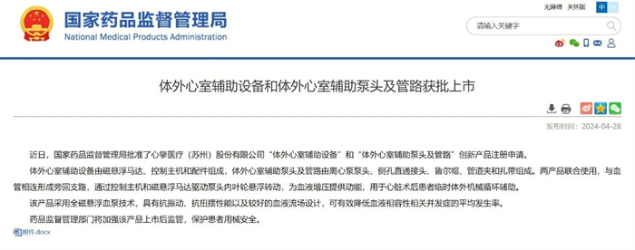 今天,中國國家藥品監(jiān)督管理局(NMPA)批準(zhǔn)了心擎醫(yī)療研發(fā)、生產(chǎn)的“體外心室輔助系統(tǒng)——MoyoAssist®”產(chǎn)品注冊申請,注冊證編號為體外心室輔助設(shè)備“國械注準(zhǔn)20243100773”、體外心室輔助泵頭及管路“國械注準(zhǔn)20243100774”。