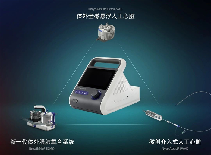 與此同時(shí),心擎醫(yī)療從心衰出發(fā),致力打造多器官生命支持平臺,基于MoyoAssist®全磁懸浮離心泵技術(shù)平臺,打造了最新一代的體外膜肺氧合系統(tǒng)(ECMO),基于同一控制平臺,打造了世界最小微創(chuàng)介入式人工心臟,且成為了唯一一款同時(shí)拿到中美“雙創(chuàng)新”的人工心臟產(chǎn)品。