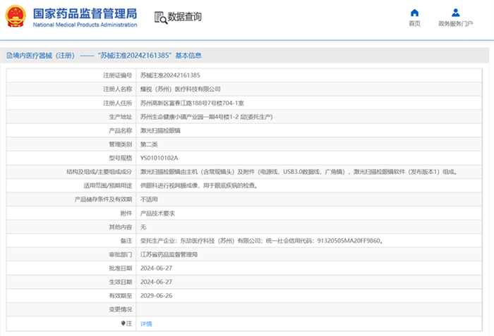 近日,耀視醫(yī)療首款超廣角激光掃描檢眼鏡獲批國家二類醫(yī)療器械注冊證。這意味著高端超廣角眼底激光成像品類將迎來新的變革。