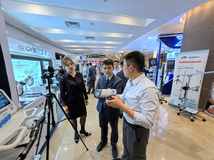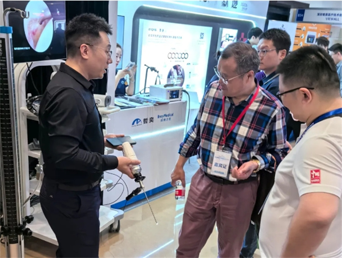 智能無線內(nèi)窺鏡系統(tǒng)以其無線便攜、超低延遲、高清晰度等創(chuàng)新特點和先進的理念,吸引了眾多參會者的目光,專家們紛紛駐足英賽飛影的展位,仔細了解產(chǎn)品的特點和優(yōu)勢,并對其給予了高度評價。