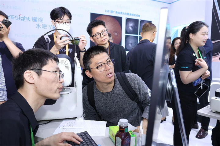 耀視醫(yī)療展臺(tái)前的觀眾絡(luò)繹不絕,『耀星海』Yetsea100超廣角SLO的三大核心技術(shù)成為全場(chǎng)焦點(diǎn)。