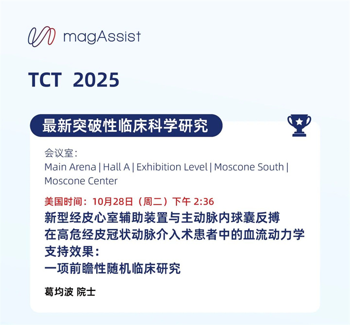 我們不僅將帶來(lái)中國(guó)原創(chuàng)數(shù)據(jù),也即將在美國(guó)啟動(dòng)正式臨床試驗(yàn),邁向全球多中心研究階段。我們期待在TCT 2025與您相遇,見(jiàn)證中國(guó)創(chuàng)新力量為全球高危PCI治療帶來(lái)的新解法,攜手探索機(jī)械循環(huán)支持的未來(lái)方向。