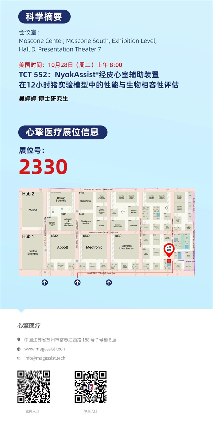 TCT 2025 期間,心擎醫(yī)療將在2330號(hào)展位展示NyokAssist®技術(shù)平臺(tái)與研究成果,誠(chéng)邀全球心血管領(lǐng)域?qū)<?、合作伙伴及同行蒞臨交流。