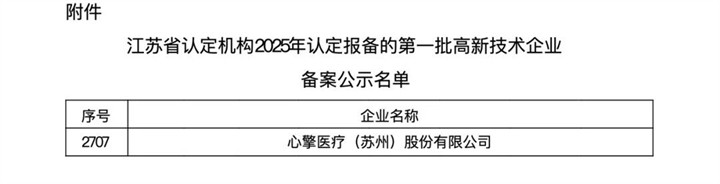 心擎醫(yī)療入選高新技術(shù)企業(yè)