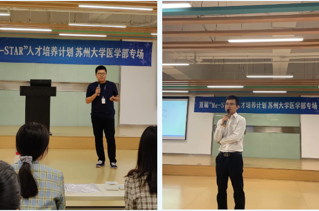 國(guó)仟醫(yī)療科技(蘇州)有限公司(原蘇大法學(xué)院2013屆)施駿學(xué)長(zhǎng)、蘇州心擎醫(yī)療技術(shù)有限公司(原蘇大機(jī)電工程學(xué)院2012屆)顏凱歌學(xué)長(zhǎng),與現(xiàn)場(chǎng)的同學(xué)們分享了自己的就業(yè)歷程。